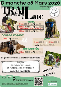 Que vous soyez coureur aguerri, marcheur du dimanche ou amateur de VTT, chacun trouvera son bonheur avec des parcours trail (9, 12 et 23 km), une randonnée pédestre (10 km) et deux randonnées VTT (10 et 22 km), sans oublier une course ludique pour les enfants. Contact & inscriptions : ape.luc12450@gmail.com