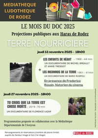 Jeudi 27 novembre, en collaboration avec la Médiathèque Départementale de l'Aveyron propose une projection sur le thème de la Terre Nourricière, conçue par Federico Rossin.