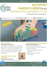 Ces ateliers animés par Elodie Scudier proposent une immersion sensorielle autour de la couleur et des matières. L’ espace est installé au sol, dans un cadre sécurisant et apaisant, propice à l’ exploration libre et à la complicité.