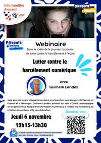 Dans le cadre de la journée de lutte contre le harcèlement scolaire, nous proposons sur le temps de la pause déjeuner, un webinaire sur le harcèlement numérique.