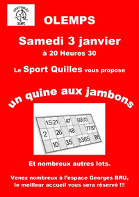 Samedi 03 janvier venez nombreux participer au quine de l'association Sport Quilles Olemps.