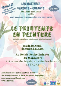 Le Relais Petite Enfance vous invite à une matinée créative autour du thème du printemps, spécialement conçue pour les enfants de 0 à 5 ans. Au programme : des activités manuelles et artistiques pour éveiller les sens, stimuler l’imagination et partager un moment ludique en famille.